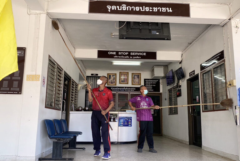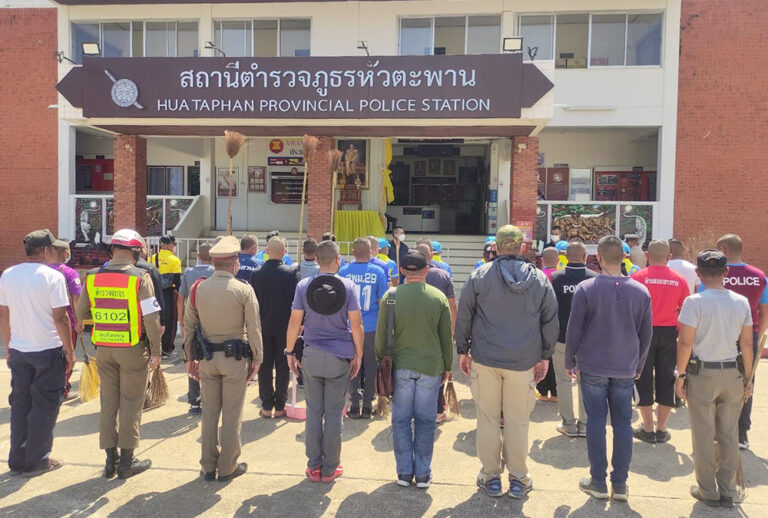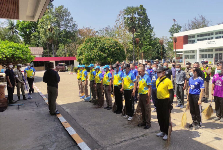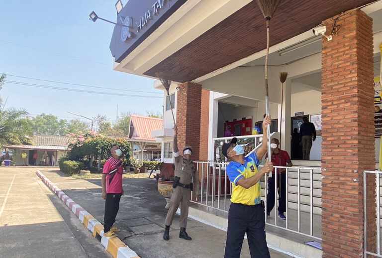 ว่าที่ พ.ต.อ.อลงกรณ์ คลังเงิน ผกก.สภ.หัวตะพาน พร้อมด้วย พ.ต.ท.ธวัชชัย จิตตรีธาตุ รอง ผกก.ป.ฯ,พ.ต.ท.ปัญญา นราชัย รอง ผกก.สส.ฯ , พ.ต.ท.มนตรี พรภักดี สว.อก.ฯ,ร.ต.อ.กันตินันท์ วิชา สวป.ฯ นำข้าราชการตำรวจ สภ.หัวตะพานทุกนายทำกิจกรรม 5 ส. ทำความสะอาดบริเวณตัวอาคารที่ทำการและสถานที่โดยรอบ