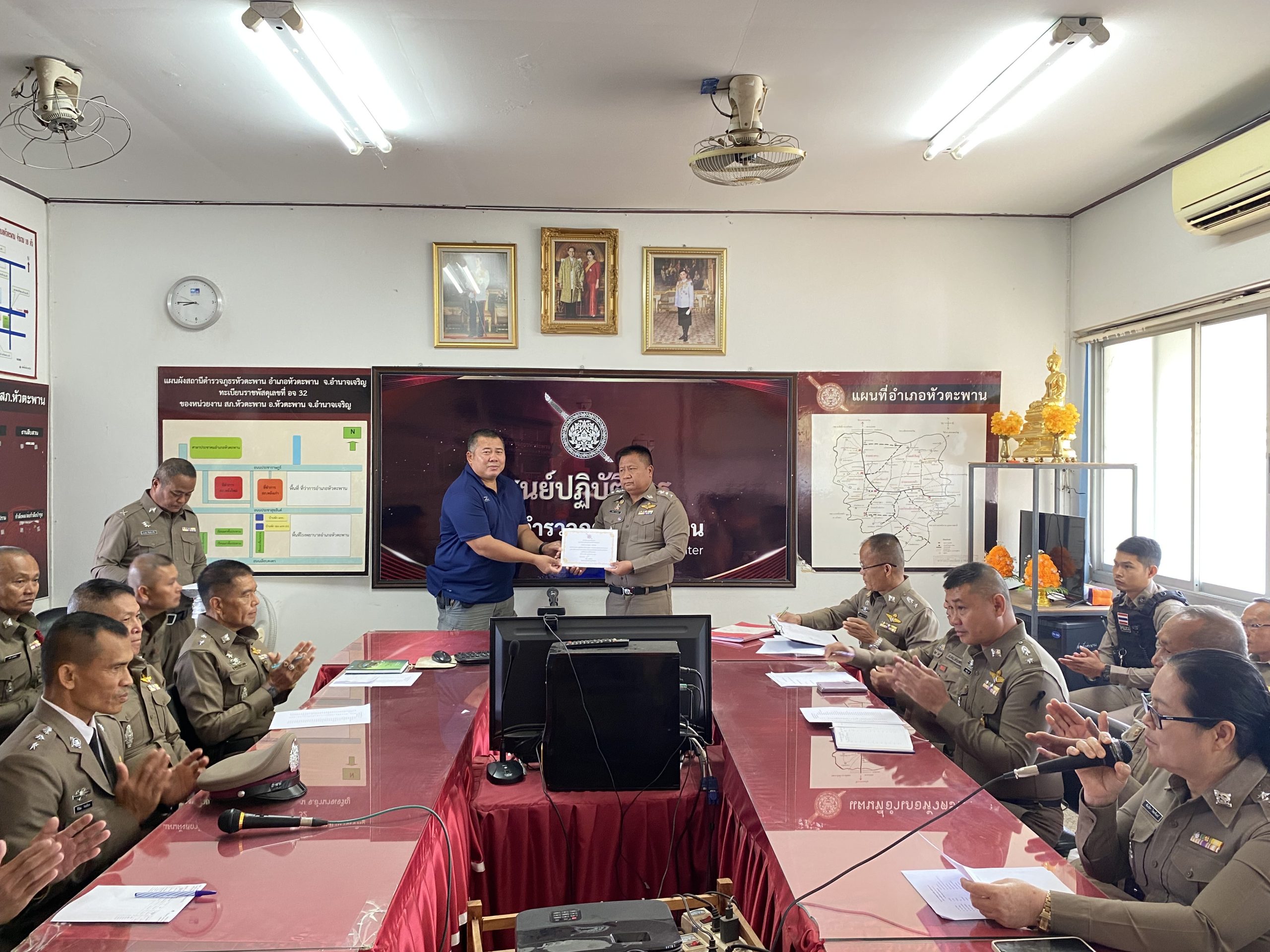 พร้อมด้วยข้าราชการตํารวจในสังกัด ร่วมประชุมประจำเดือน ธันวาคม 2568 เพื่อนำเรียนผลการปฎิบัติงาน กำชับแนวทางปฏิบัติตามข้อสั่งการ และแจ้งข้อราชการของผู้บังคับบัญชา แนะนำข้าราชการตำรวจใหม่ ที่เดินทางมาดำรงตำแหน่งในสังกัด สภ.หัวตะพาน พร้อมมอบเกียรติบัตรผู้ปฏิบัติดีเด่น ประจำเดือน พฤศจิกายน 2568 ณ ห้อง ศปก.สภ.หัวตะพาน
