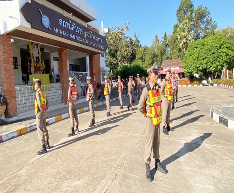 ผกก.สภ.หัวตะพานเรียกแถวข้าราชการตำรวจ สภ.หัวตะพานฝึกทบทวนการถวายความภัยเตรียมพร้อมสำหรับการรับเสด็จ