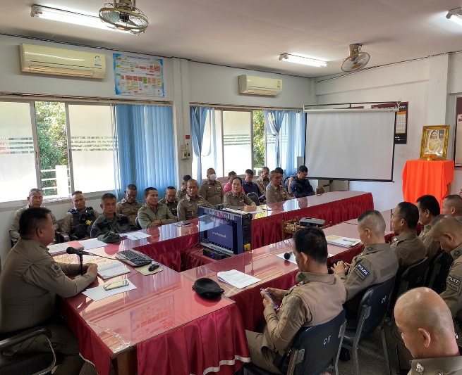 พ.ต.อ.รัชยศ มาศพันธ์ ผกก.สภ.หัวตะพาน ร่วมประชุมหารือและสรุปผลการปฏิบัติงานของสถานีตำรวจร่วมกับคณะกรรมการตรวจสอบและติดตามการบริหารงานตำรวจ